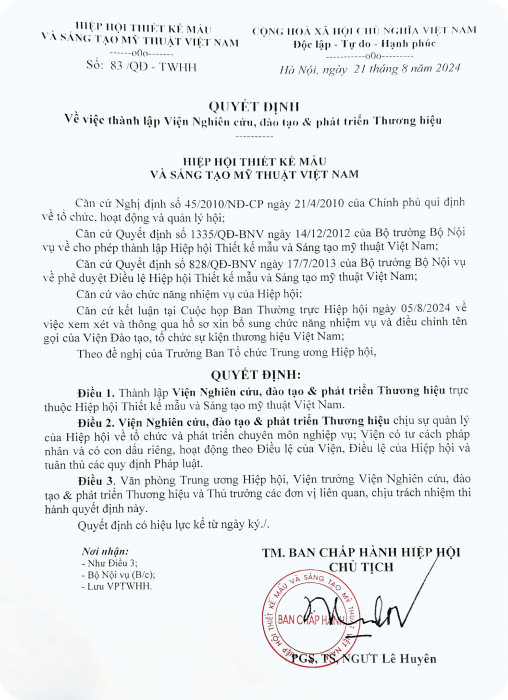 ( Thực hiện bởi Viện Trưởng, Viện Nghiên cứu, Đào tạo & Phát triển Thương hiệu Quốc gia )